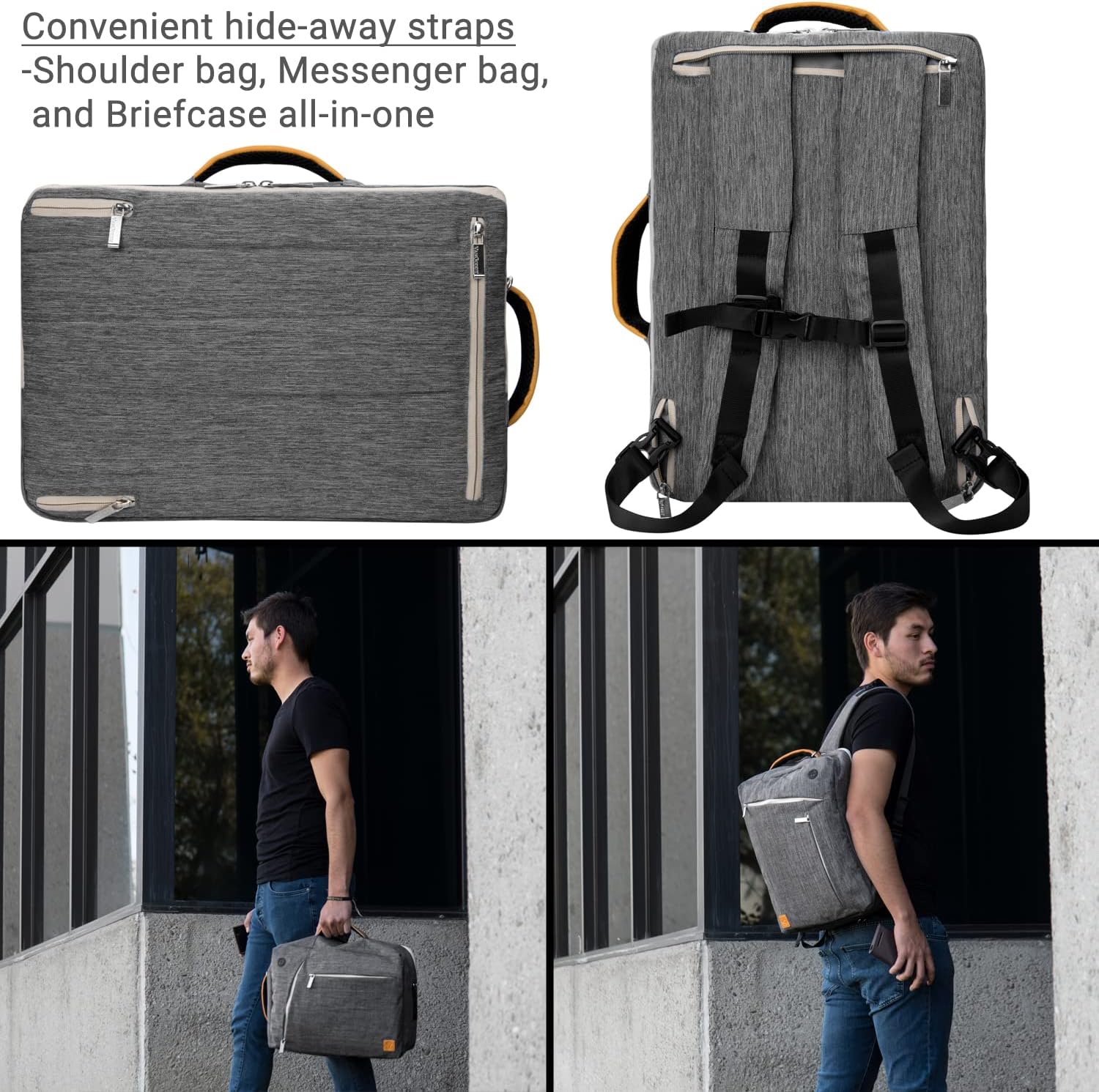 • [ 3-IN-1 CONVERTIBLE DESIGN ]- This unique hybrid laptop bag features an interchangeable 3-way design that can be transformed into a messenger bag, shoulder bag, and briefcase depending on your daily travel needs.