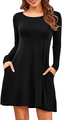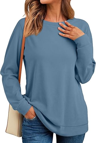 Crewneck Fall Sweatshirts for Women Trendy- Women’s Plain Long Sleeve Pullover Tops with Pockets Fashion